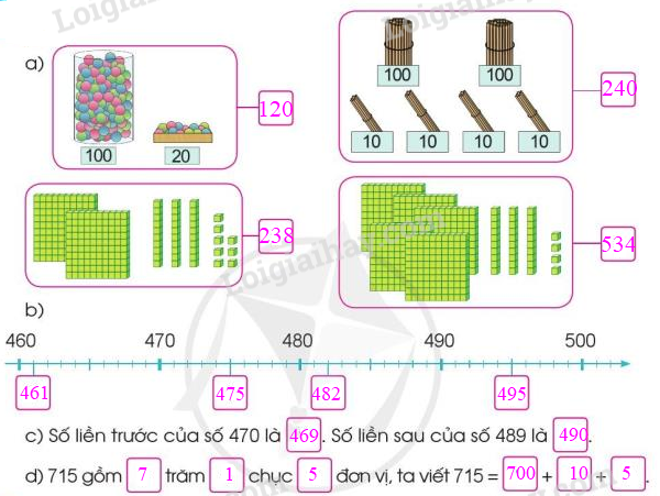 d) Xác định hàng trăm, hàng chục, hàng đơn vị của số đã cho và viết số đó thành tổng các trăm, chục, đơn vị.