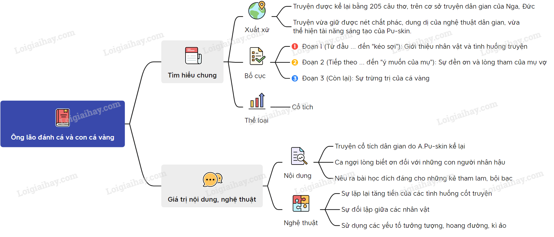 Sơ đồ tư duy truyện “Ông lão đánh cá và con cá vàng”: