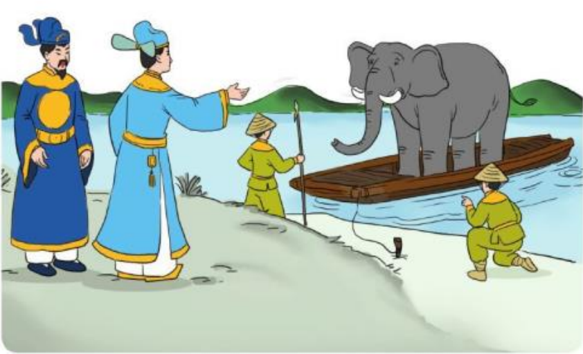 a) Lương Thế Vinh sai lính dắt voi xuống thuyền, sau đó, ông cho voi lên bờ.