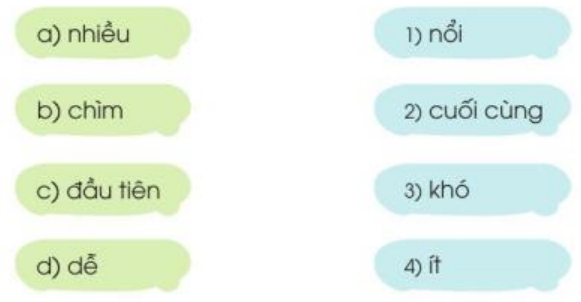 Câu 1: Những từ nào dưới đây có nghĩa trái ngược nhau? Ghép đúng: