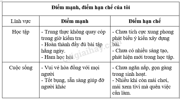 Em hãy xác định và chia sẻ với bạn bè về những điểm mạnh, điểm hạn chế của bản thân trong học tập, trong cuộc sống.