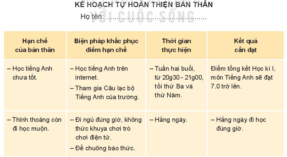 – Tranh thủ sự hỗ trợ, giúp đỡ của thầy cô, bạn bè và người thân trong quá trình tự hoàn thiện bản thân.
