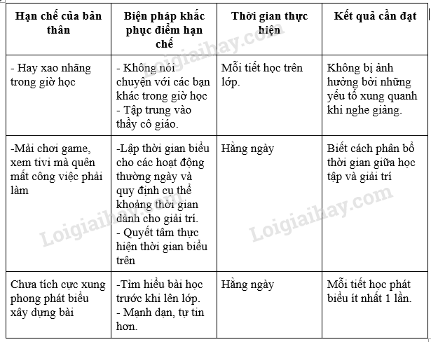 Lập kế hoạch khắc phục những điểm hạn chế để tự hoàn thiện bản thân.
