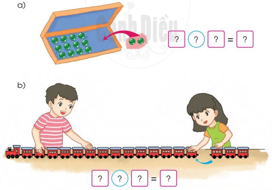 Nêu phép tính thích hợp với mỗi tranh vẽ: