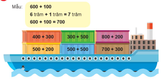 Em quan sát ví dụ mẫu rồi tính nhẩm kết quả các phép cộng số tròn trăm.