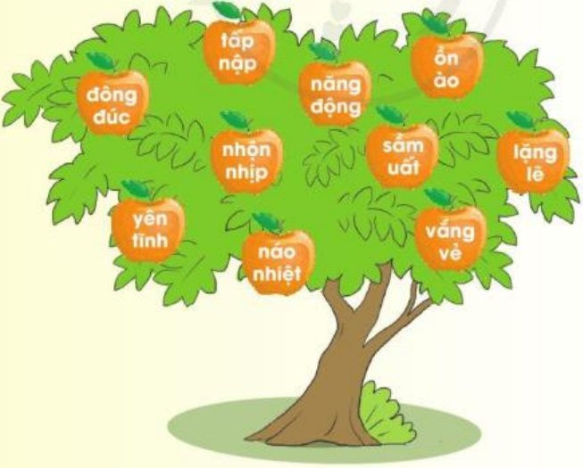 Chọn những quả táo chứa từ ngữ chỉ đặc điểm nổi bật của cuộc sống đô thị: