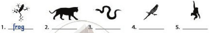 (Nối. Viết các từ trong khung bên dưới các động vật. Nghe và kiểm tra.)