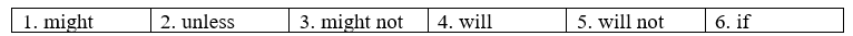(Hoàn thành các câu với If, unless khi hoặc hình thức đúng của might hoặc will.)