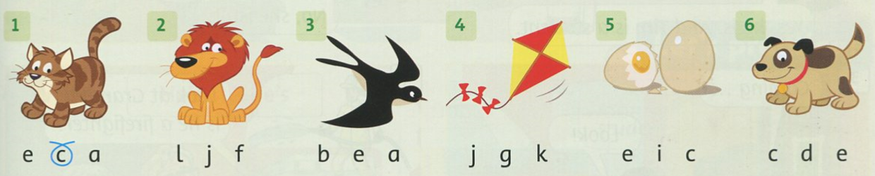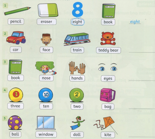 1. bút chì / cục tẩy / số 8 / cuốn sách