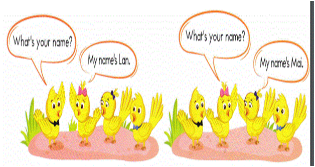 Cách chơi: người thứ nhất sẽ hỏitên“What’s your name?,  người thứ 2 sẽ trả lời “My name’s Lan” ( Tôi tên Lan.). Tiếp tục người thứ 2 sẽ hỏi tên và người thứ 3 trả lời tên của mình, thay phiên nhau cho đến khi nào hết lượt.