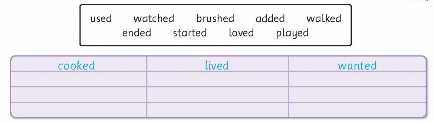 (Đọc những từ kết thúc bằng ed. Sau đó viết chúng vào cột đúng.)