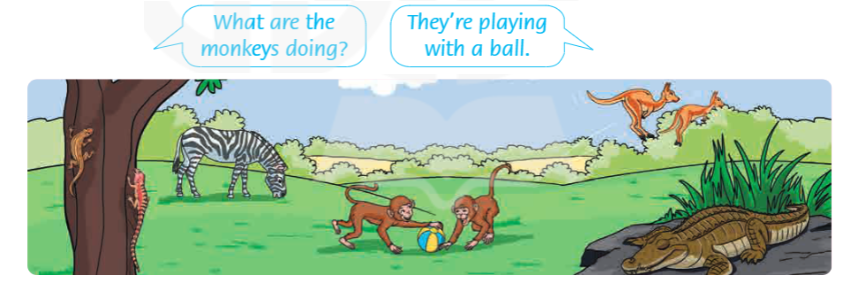 – What are the monkeys doing? (Những chú khỉ đang làm gì?)