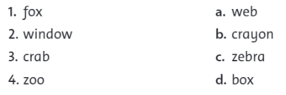 Listen and write the numbers. Read and write T or F. Look and write. Look, ask and answer. Look and write. Match the words with the same sound.