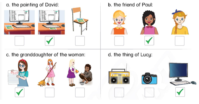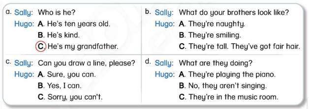 Circle the correct letters and write. Read and choose the correct responses. Ask and answer. Listen and tick. Write the sentences. Talk about your friend.