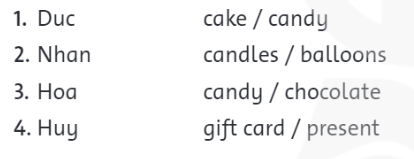 4. Look! Huy has a present. It’s a gift card. He likes gift cards.