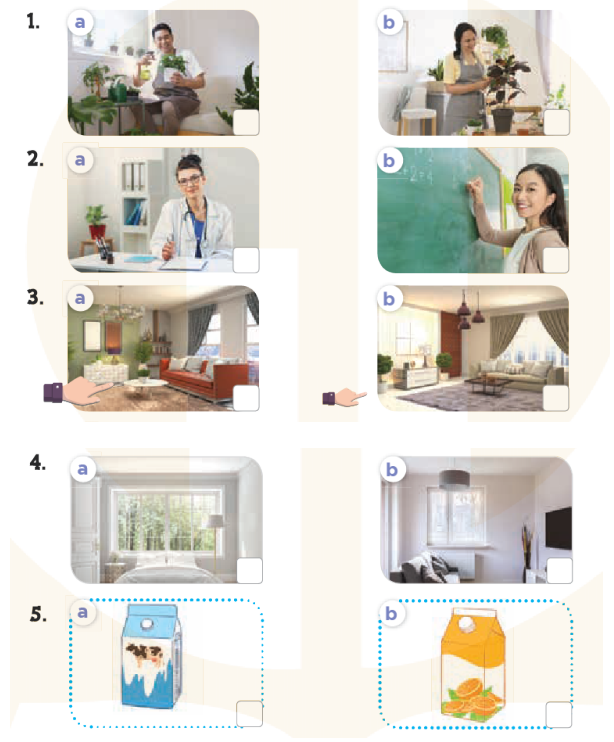 1. Look and tick. 2. Listen and number. 3. Read and match. 4. Read and complete. 5. Ask and answer.