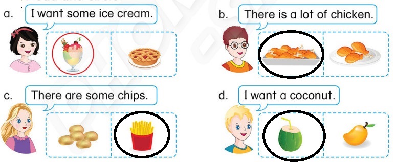 1. Find the words and write. Match. 2. Read and circle. 3. Circle and say.4. Listen and tick (√).5. Read and write the names. 6. Role-play.