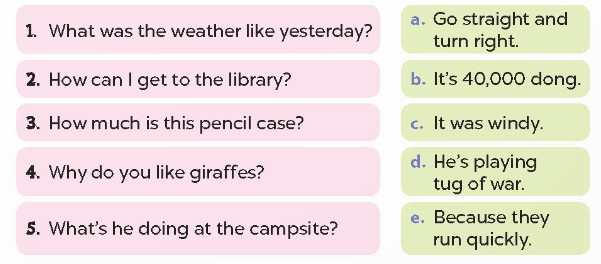 Listen and tick. Ask and answer. Read and match. Read and complete. Let’s write.