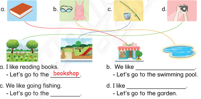 Let’s go to the bookshop. (Hãy đi đến hiệu sách.)