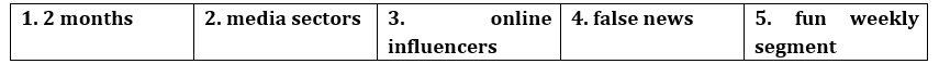 5. Listen to a dialogue about a media podcast and complete the sentences (1-5). Write NO MORE THAN THREE WORDS AND/ OR A NUMBER for each answer.