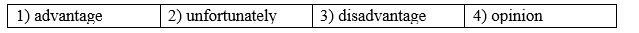 7. Complete the text with advantage, disadvantage, unfortunately and opinion.