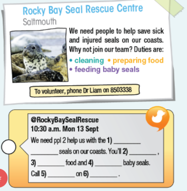 7. Read the poster and complete the Seal Rescue Centre’s tweet asking for volunteers.