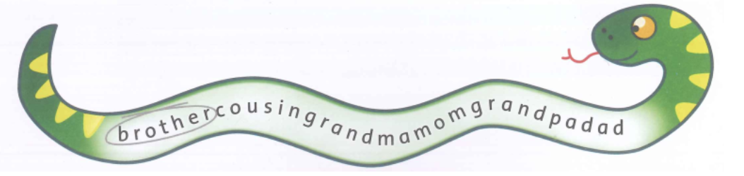 cousin (anh họ) grandma (bà)  mom (mẹ)  grandpa (ông) dad (bố)
