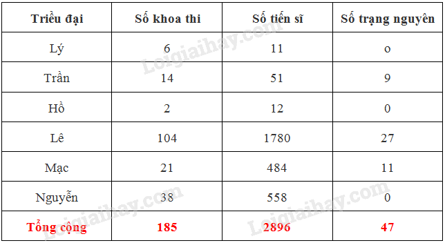 a) Triều đại nào tổ chức nhiều khoa thi nhất?