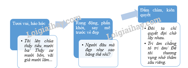 Lời thoại của Thị Mầu cho thấy tình cảm, cảm xúc của nhân vật đã thay đổi như thế nào từ đầu đến cuối đoạn trích? Điền các từ ngữ chỉ tình cảm, cảm xúc và những lời thoại tương ứng vào sơ đồ sau (làm vào vở)