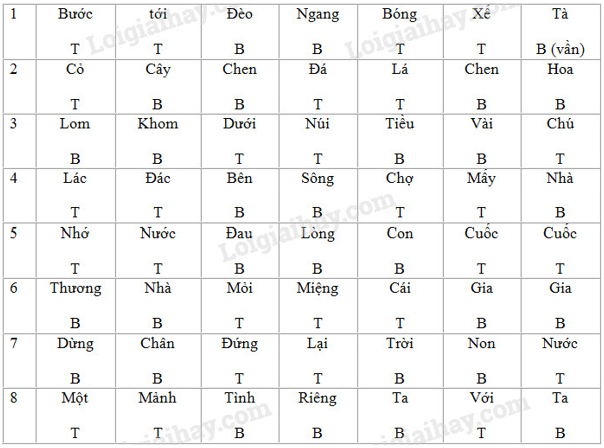 – Câu 1 và câu 2 đối nhau về thanh điệu (khác nhau bằng trắc ở các chữ thứ 2, 4, 6)