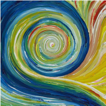 – Cảm xúc khi xem tranh: Giống như đang rơi vào một vũ trụ vòng xoáy vô định, thoát ly không thời gian.