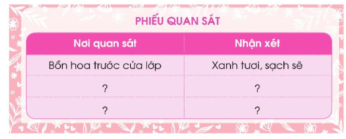 Quan sát lớp học và khu vực hành lang của lớp để hoàn thành phiếu sau.