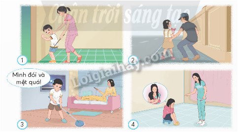Tranh 3: Đứa trẻ phải lau nhà dù rất đói và mệt: hành vi bóc lột sức lao động