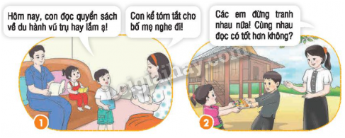 Tranh 1: Trò chuyện với bố mẹ về những chuyện xảy ra trong cuộc sống