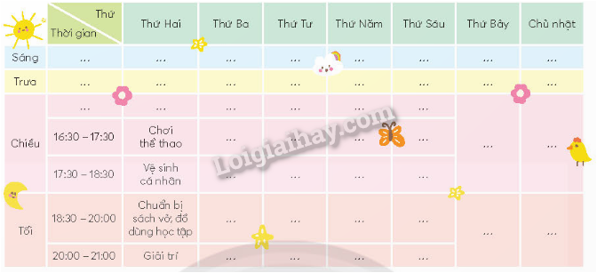 Lời giải chi tiết: HS tự thực hiện thời gian biểu của em