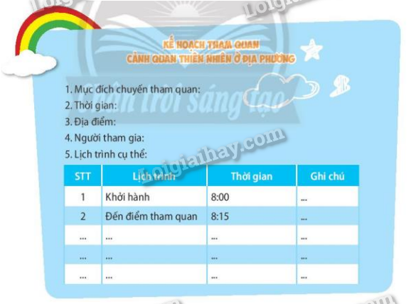 KẾ HOẠCH THAM QUAN CẢNH QUAN THIÊN NHIÊN Ở ĐỊA PHƯƠNG