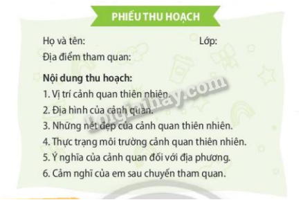1. Thực hiện việc tham quan, chăm sóc một cảnh quan thiên nhiên và hoàn thành phiếu thu hoạch.