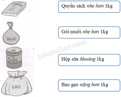 Dùng các từ đã cho để điền vào chỗ trống thích hợp với từng khối lượng của các loại đồ vật.