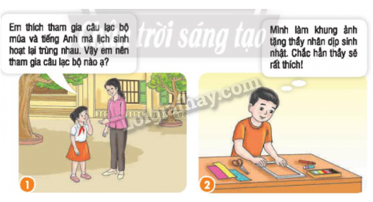 1. Tranh 1: Học sinh xin cô giáo tư vấn về việc tham gia câu lạc bộ