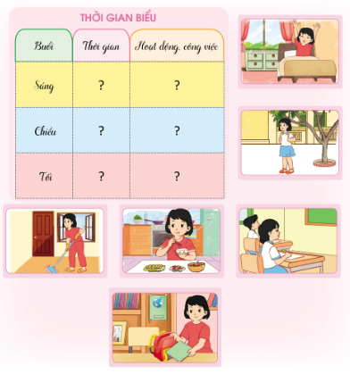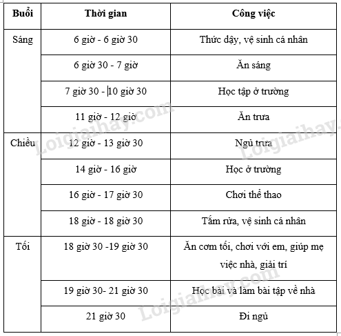 Lập thời gian biểu các hoạt động của em theo mẫu gợi ý sau: