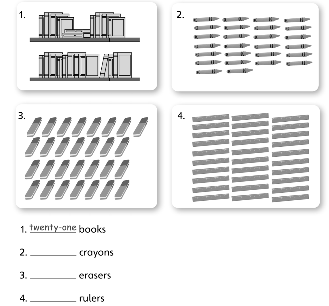 1. twenty-one books (hai mươi mốt cuốn sách)