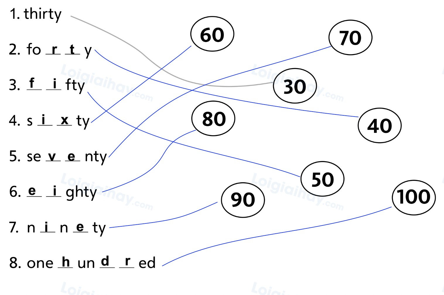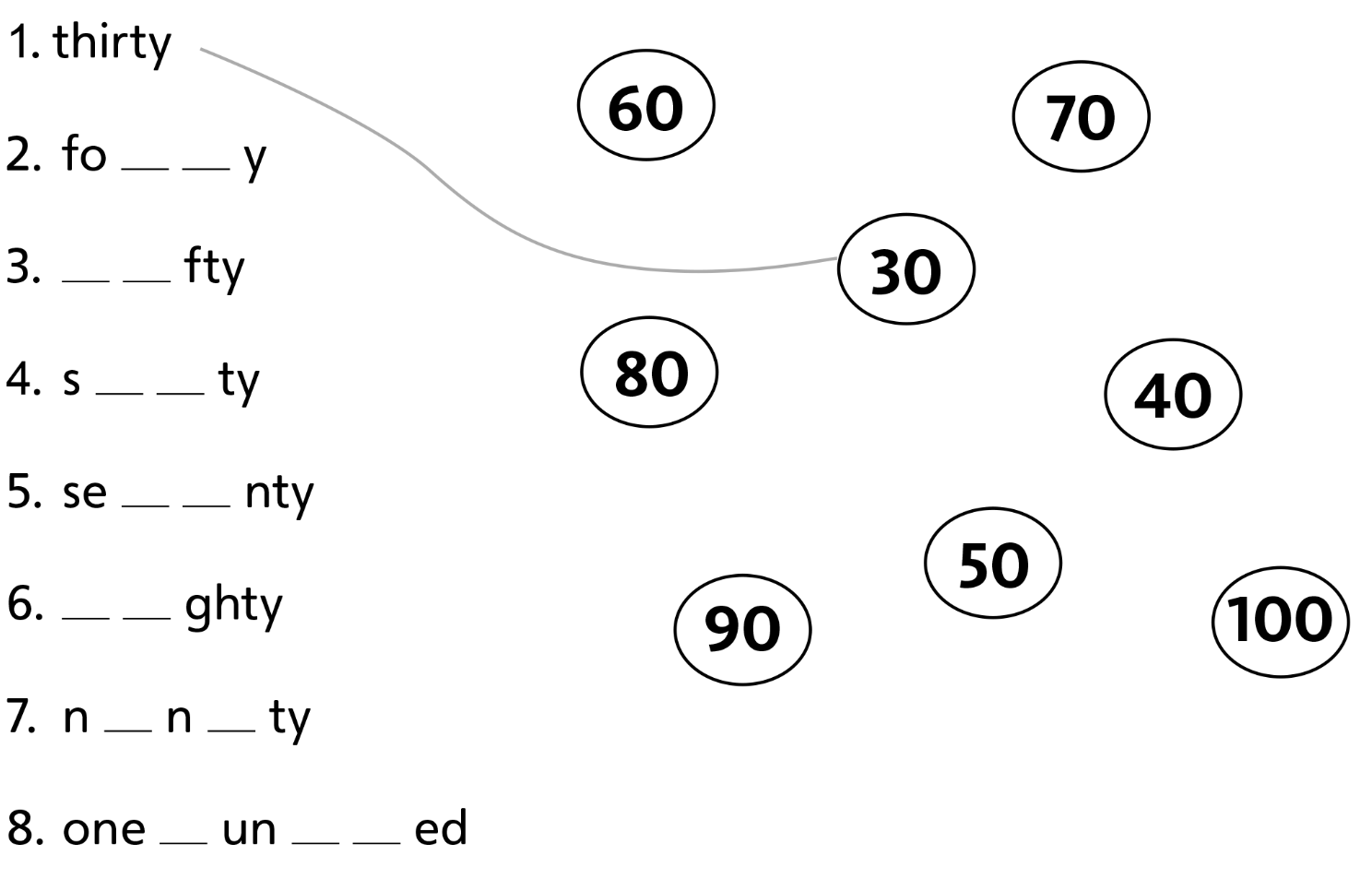 1. thirty: 30