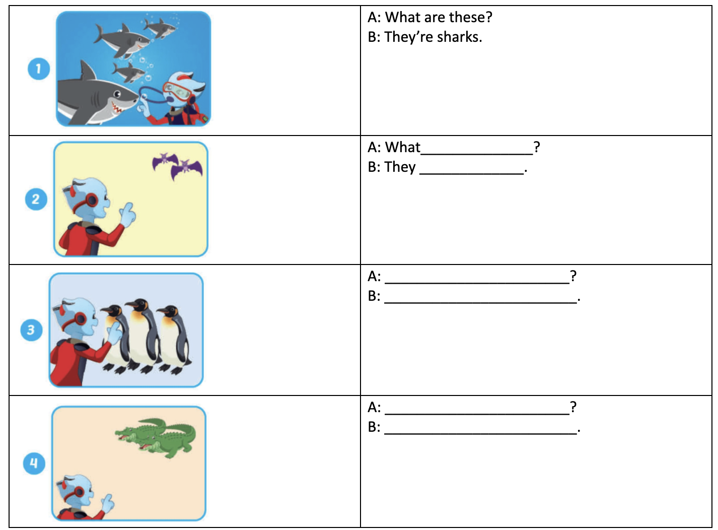 2. B: Oh wow. Those animals are cool.