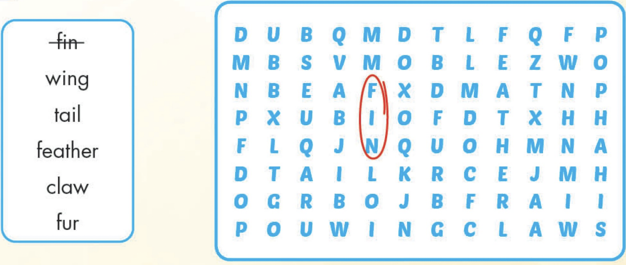 1. G: Many fish have fins. They use their fins to swim.