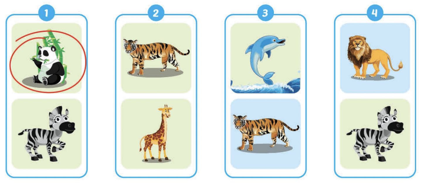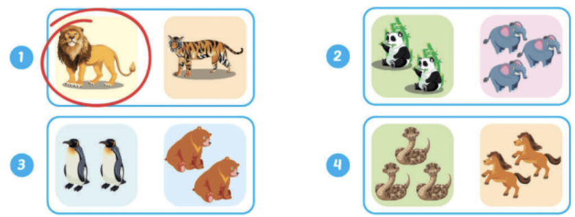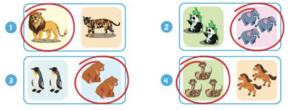 (Khoanh tròn vào con vật khác loại và viết.)
