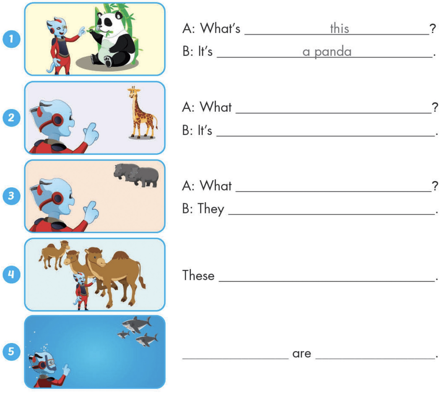 1. A: What’s this? (Đây là con gì?)