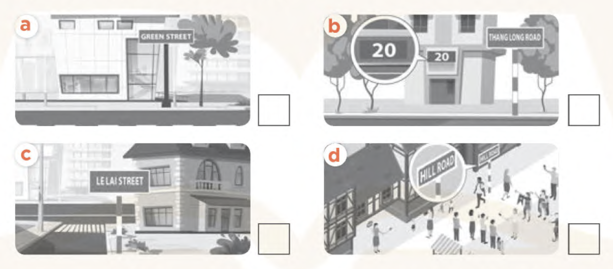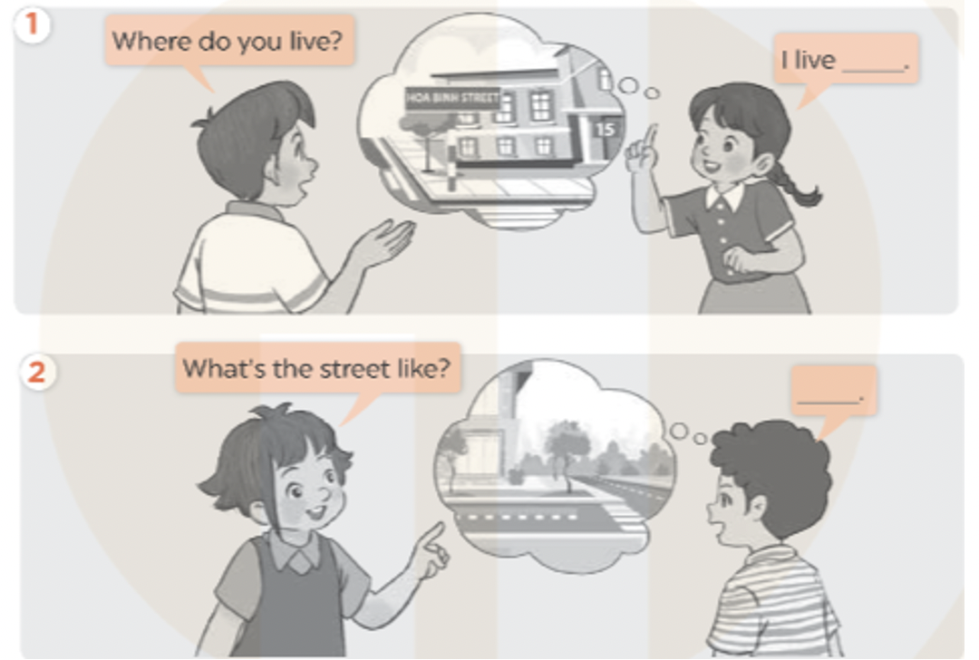 B: I live at 15 Hoa Binh Street. (Tôi sống ở 15 đường Hòa Bình.)