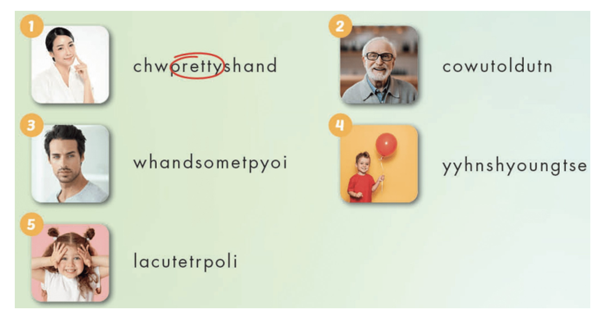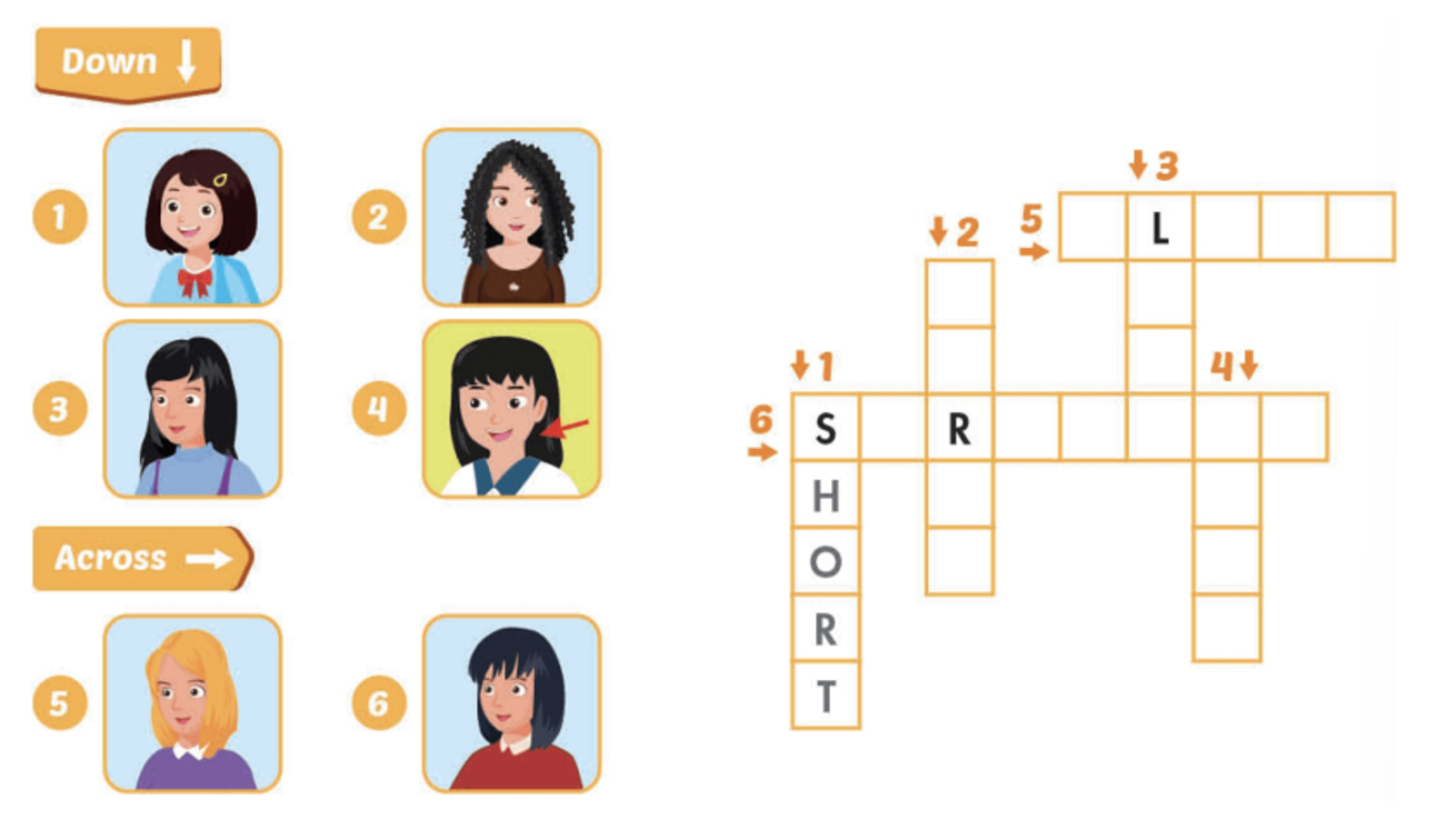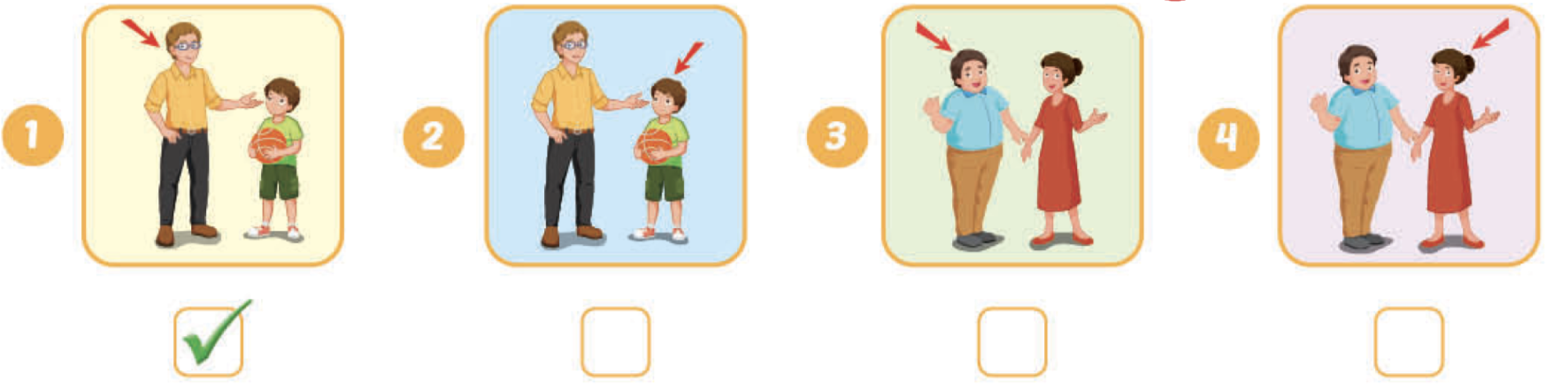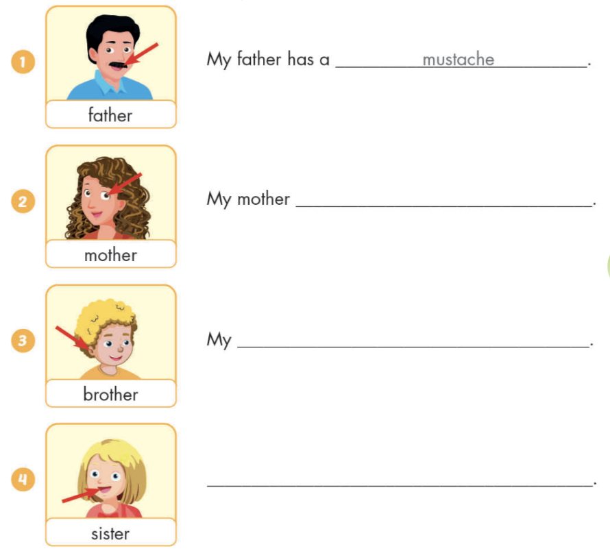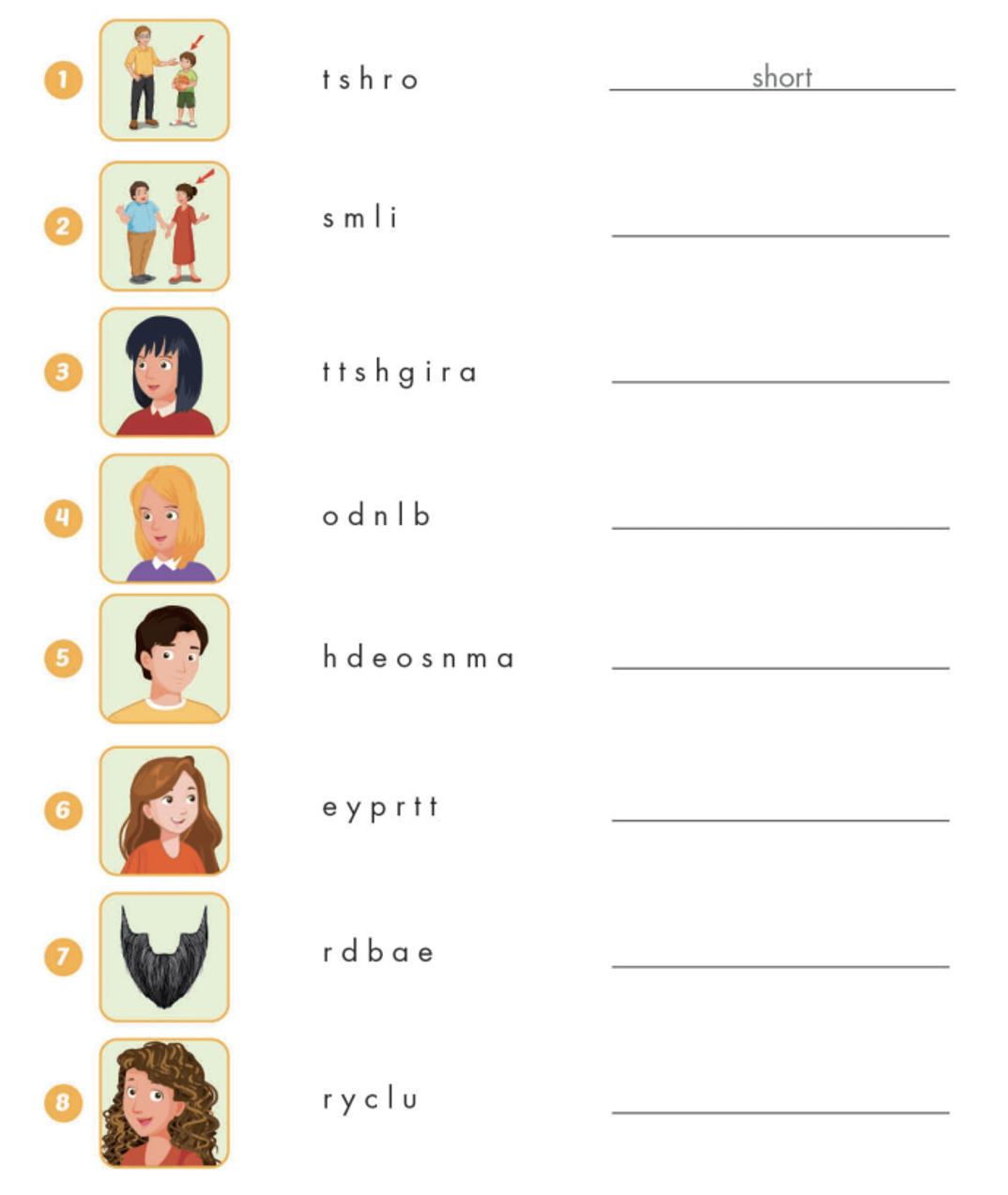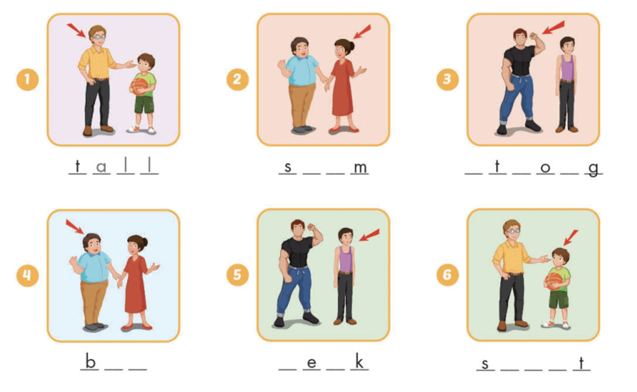 Draw lines. Complete the words. Listen and put a tick (√) or a cross (X). Look and write.