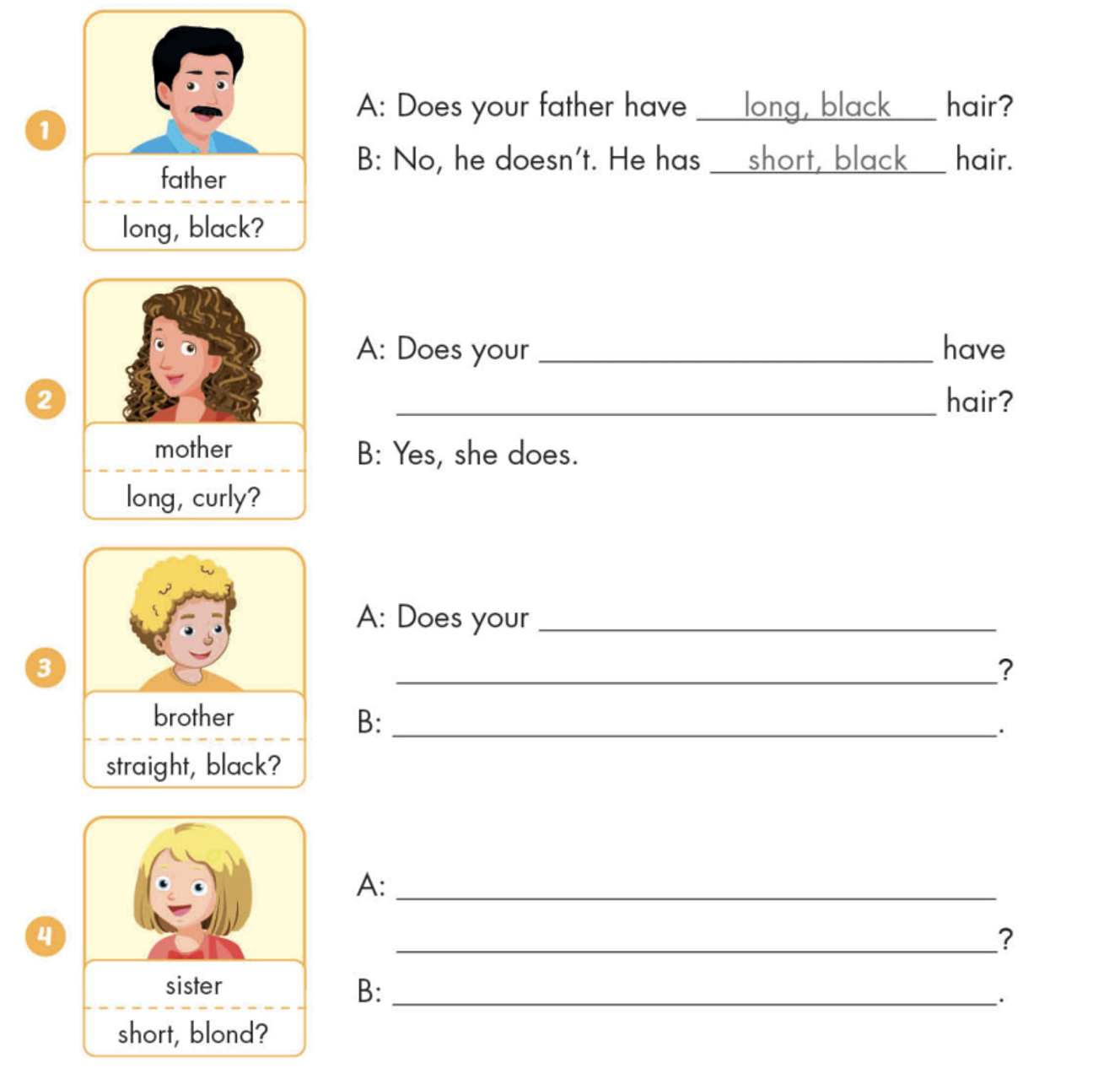 2. A: Ông của bạn có tóc ngắn và thẳng không?