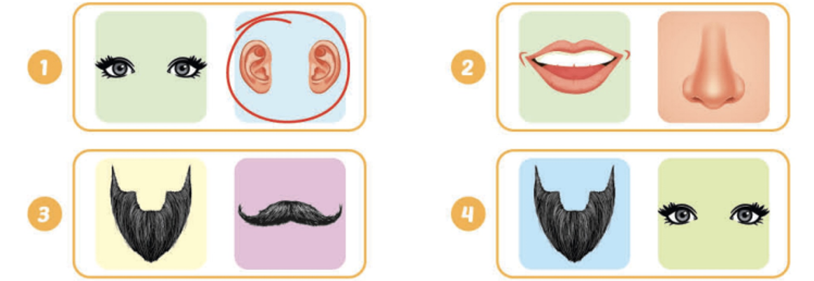 Mary: Anh ấy có đôi mắt nâu và mái tóc đen, ngắn, xoăn.